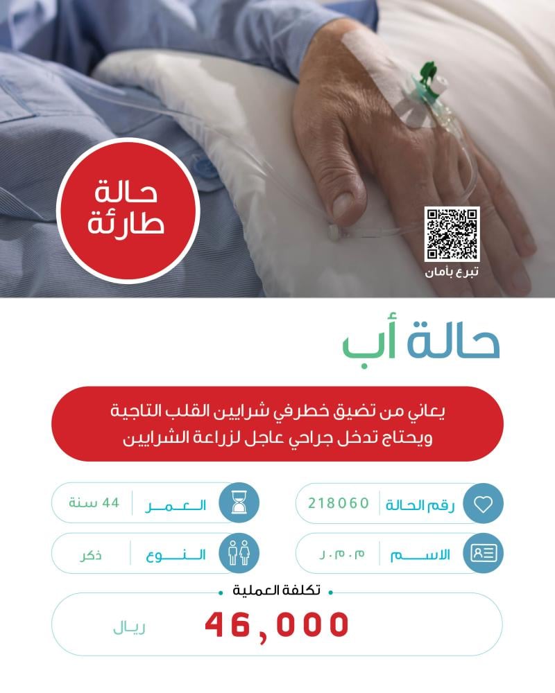 ومعنا اليوم حالة كهذه لأب يعوّل أبنائه وأطفاله، ويصعب عليه الاستمرار في السعي بالمرض الذي يتفاقم ويضيقُ عليه حياته ويجعل مهامه أصعب، وكلما تأخر عن اتخاذ إجراء طبي قد يصل إلى مرحلة حرجة.