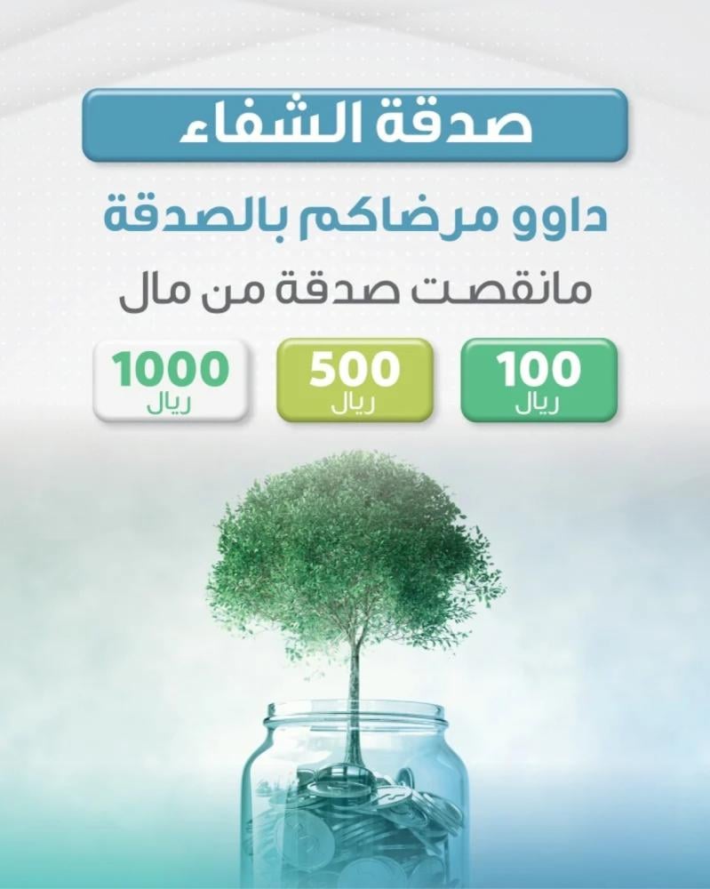 صدقة الشفاء هي من أحد أفضل الأعمال التي يقدمها الإنسان وذلك بنيةِ الشفاء من الأمراض، وأوصانا بها رسول الله محمد صلَّ اللهُ عليه وسلّم. وبما أننا نقدمها بنية شفاء أحد فإننا في الوقت نفسه نساعدُ في توفيرِ الرعاية الصحية لمن يحتاجها.